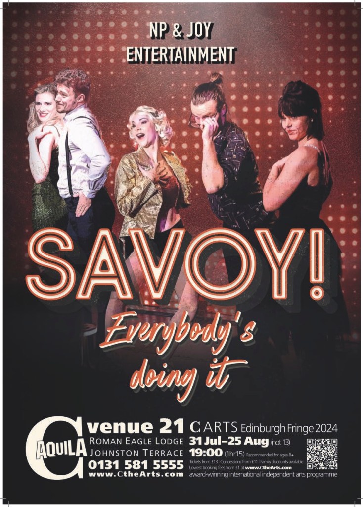 We first started working on SAVOY! in 2022 at the Phoenix Arts Club in London. The idea came from the desire to bring something to the British musical theatre scene that is authentically ours. It started out as a fun show with great tunes – initially we were only writing a script to connect the songs. This, however, led to the creation process of our lead character, Naurelia Riddell (played by the glorious Kilke John. Naurelia is a half-human, half-divine narrator with superpowers and insights into all things relationships. She delights in manipulating a cast of four mortals while constantly addressing and engaging with the audience. She draws inspiration from iconic literary characters such as Puck from A Midsummer Night’s Dream, Tinker Bell from Peter Pan, and Esther Perel, the globally renowned couple’s therapist.