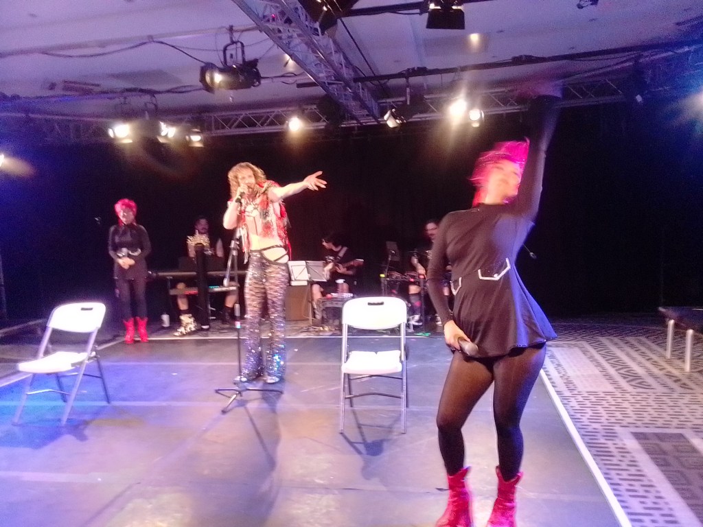 He wasn’t alone – two pink-haired ladies – the Kuntz – danced & moomin’d about him; while a slick three-piece – The Gruntz! – bang’d out a series of 70’s classics from artists such as Donna Summer & Talking Heads. Together, the troupe’s hedonistic chemistry just crackl’d, shooting funky electric sparks into the audience & setting our spirits on fire.