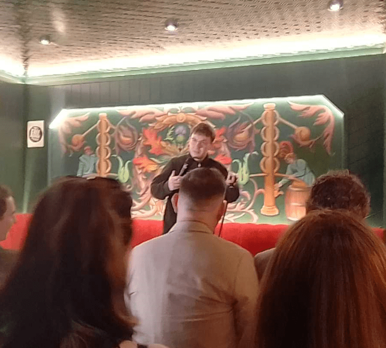 He did find that treasure, however, when moving from his probably long-scripted set, into a discussion of the painting of the Green Man behind him. Like a lot of Tim’s stuff, this felt innovative, & in his quest for comedic victory he incorporated the battlefield terrain with an effortless naturality – a victory of course, he achiev’d. We were all won over, pretty much from start to finish, & I’ve a genuinely strong feeling that, after dropping some of the minor superfluities, Tim’s unique, refreshing & affable goofballerie will grow into something pretty special.