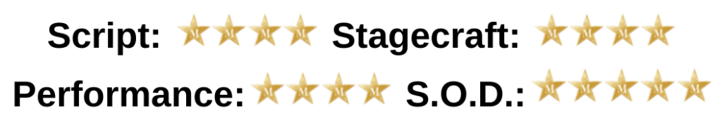 With all the physicalities being brought through her she didn’t miss a thing, playing her characters with willingness rare, sometimes contorted as she seemed to become beside herself but maintained throughout a great sense of humour (I mean that to the greatest sense) with that care that made things so much a pleasure.