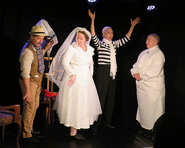 The meandering, drunken, sex-driven Ernest Hemmingway has a prominent feature in the soon-to-be married couples life. Sneaking, peaking and interfering, Picasso emerges with advice that merits praise and reward. So, Alice is pretending to be Alice, Gertrude is pretending to be Gertrude, Alice is pretending to pretend to be Alice, Gertrude is Gertrude pretending to be Gertrude and so on. Confusing, not at all, as this show is not pretentious, far from it, its just full of people pretending.