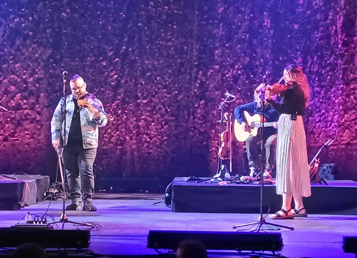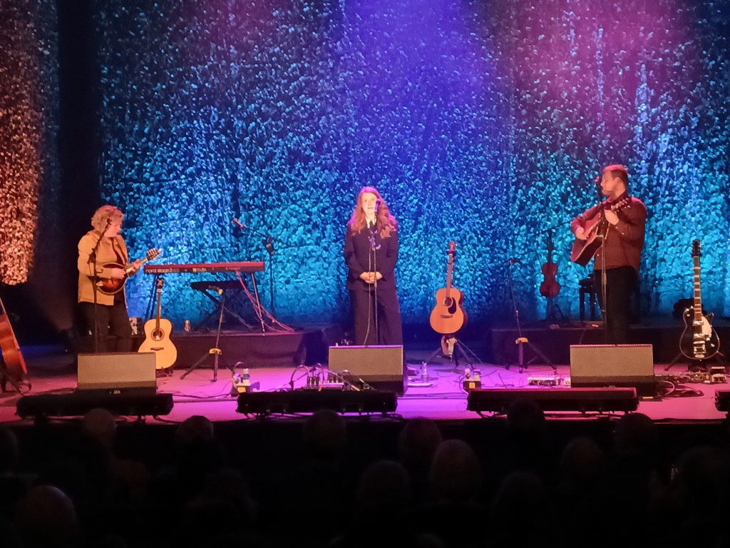 The night proved an event of magnificent proportions. On first were a group called Hannah Rarity, the self-titled 3 piece playing to her harmonious vocals. The large stage there was decorated with two small stages on top of it had Rarity and her entourage lining the front for their encouragingly adept music, to soak and fill the room with their Celtic celebration. Of course, heading for a flawless capturing of old songs renewed, lively playing, foot stomping well laid passion in the pristine conditions of the theatre.