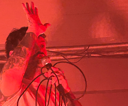 The warehouse style brings us back to the 90’s when raving was all the rage. And with that enterprise we were entertained by live vocal and drum, along with a backing track. Already mixing the DJ vibe with rock n roll, punk and an enormous vocal spoken and sang, enticing the crowd as should be with a connection, proud and extremely relatable.