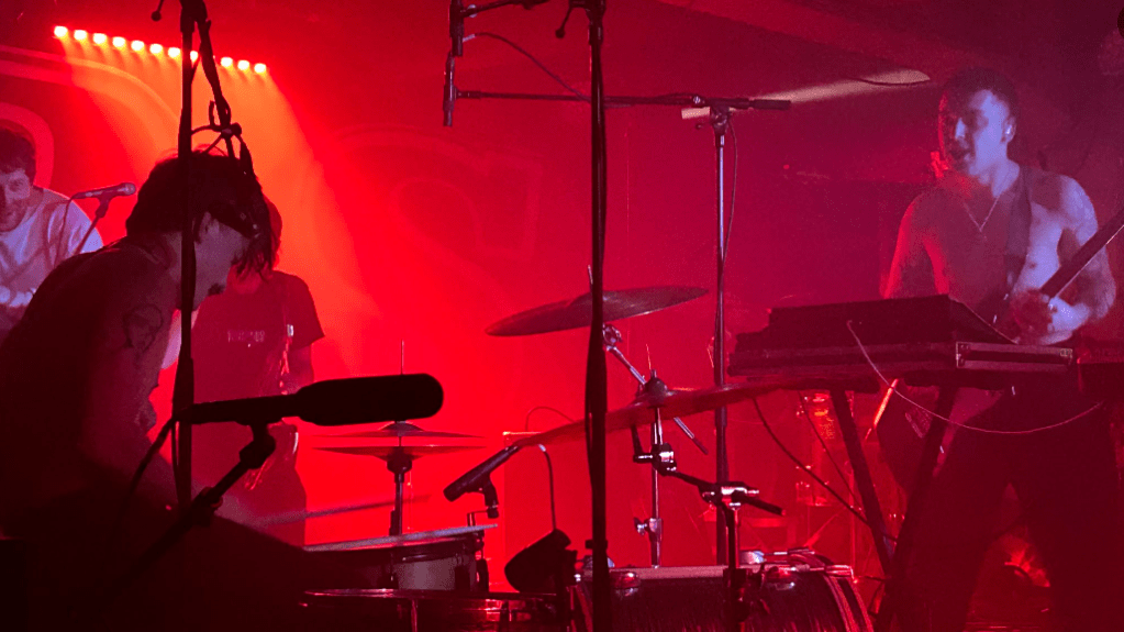 Out of the multi-purposes of the SWG3 venue the gig was in the upstairs smaller room, a space that feels succinct in its layout. It has such great proportions, with a lower ceiling, and a shorter room. This made the music stand out with more intimacy, making effects with the lighting, the steam and the stirringly joyous audience activity.